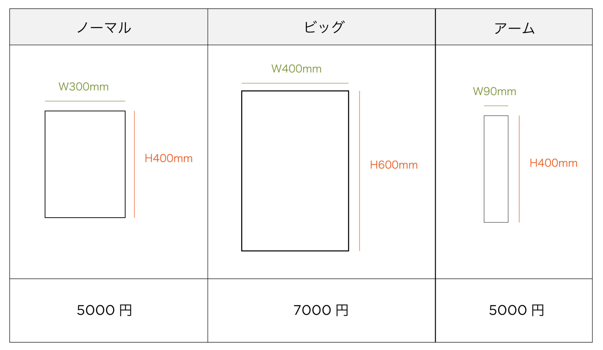 | ビッグ : (H) 34cm × (W)43cm 以内 → 900円 |