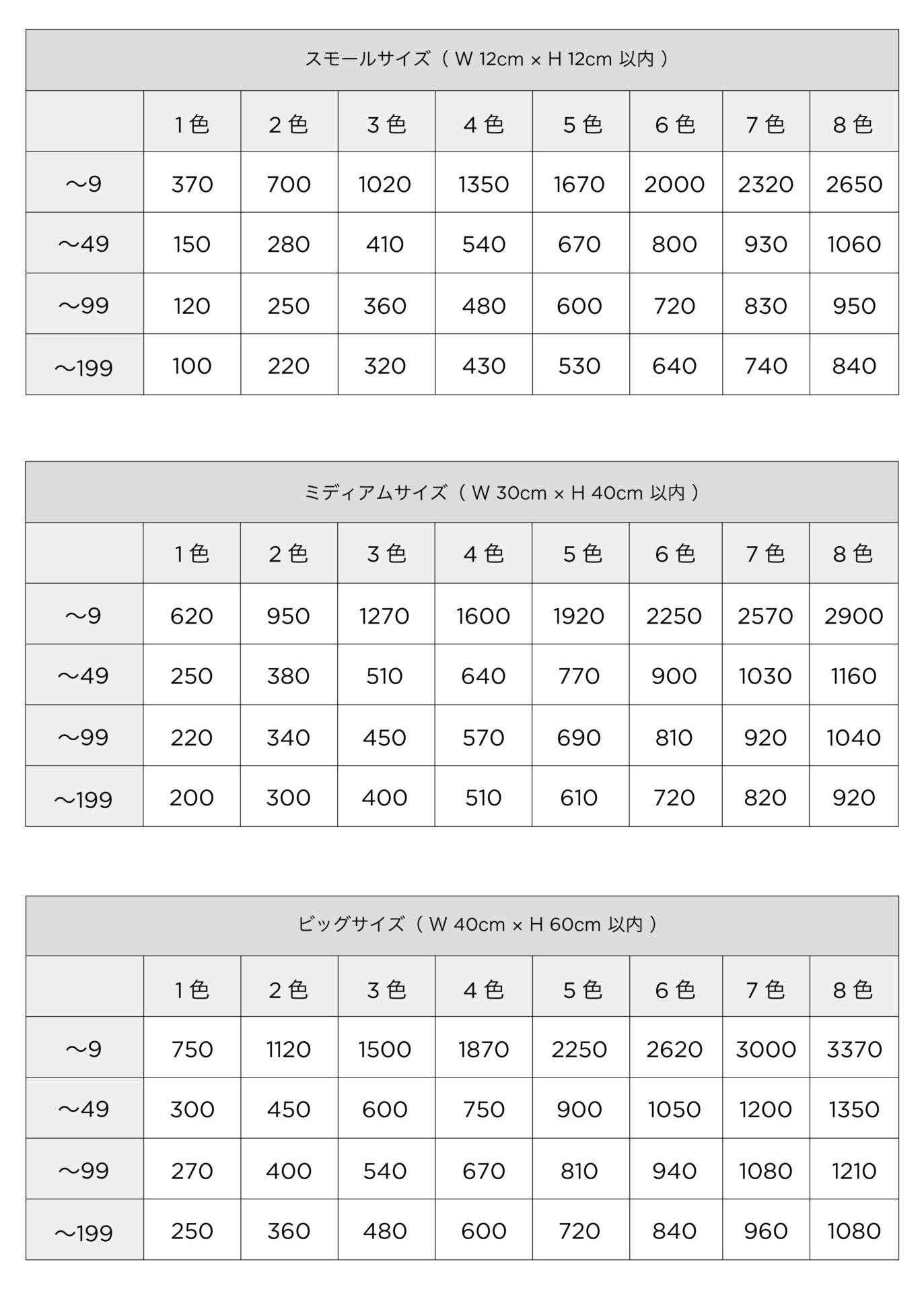 基本プリント工賃