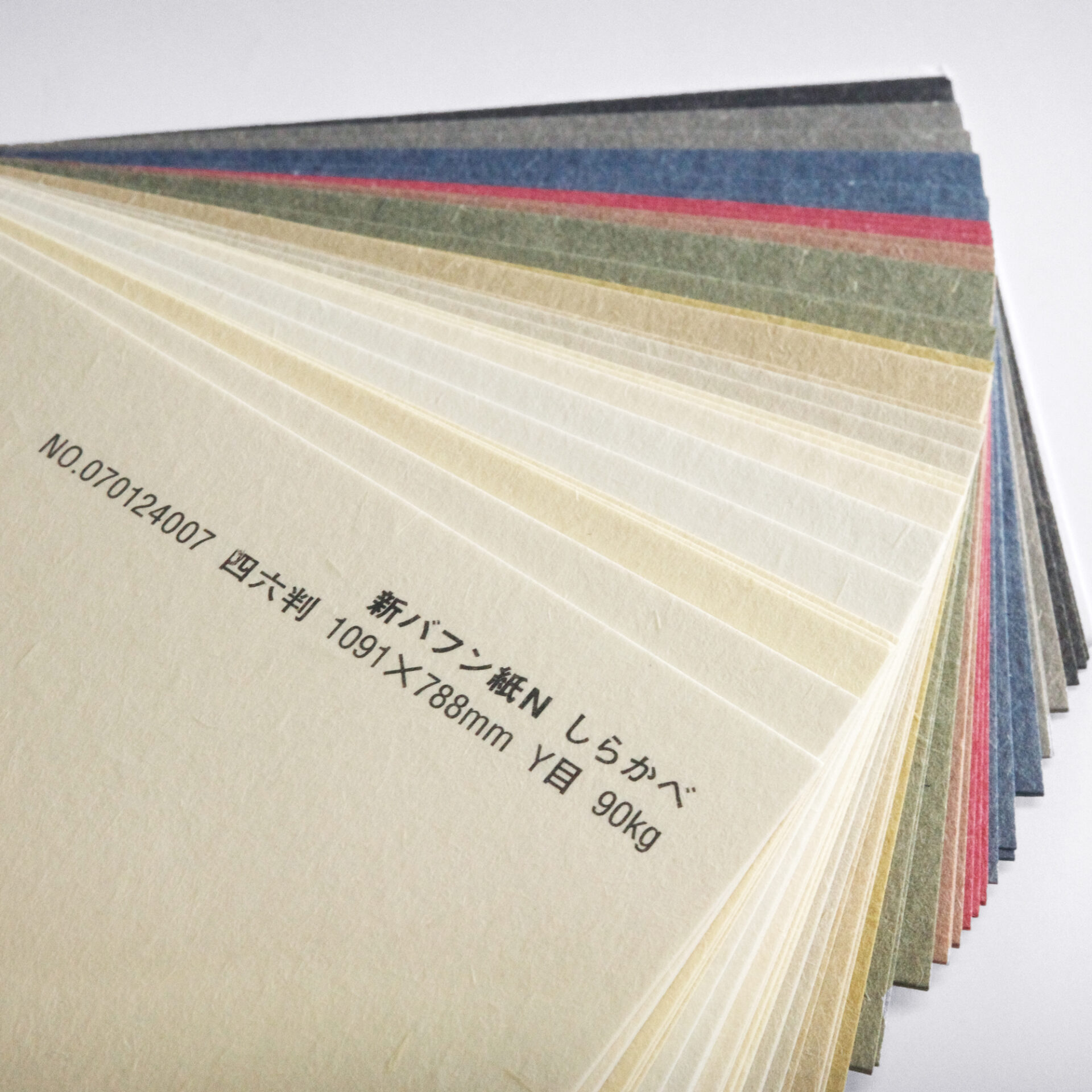 紙本来の触感があるナチュラルな肌と厚さ。空気を内包しつつ、剛度を保った紙質。深くシックな色が特長のファンシーペーパー。