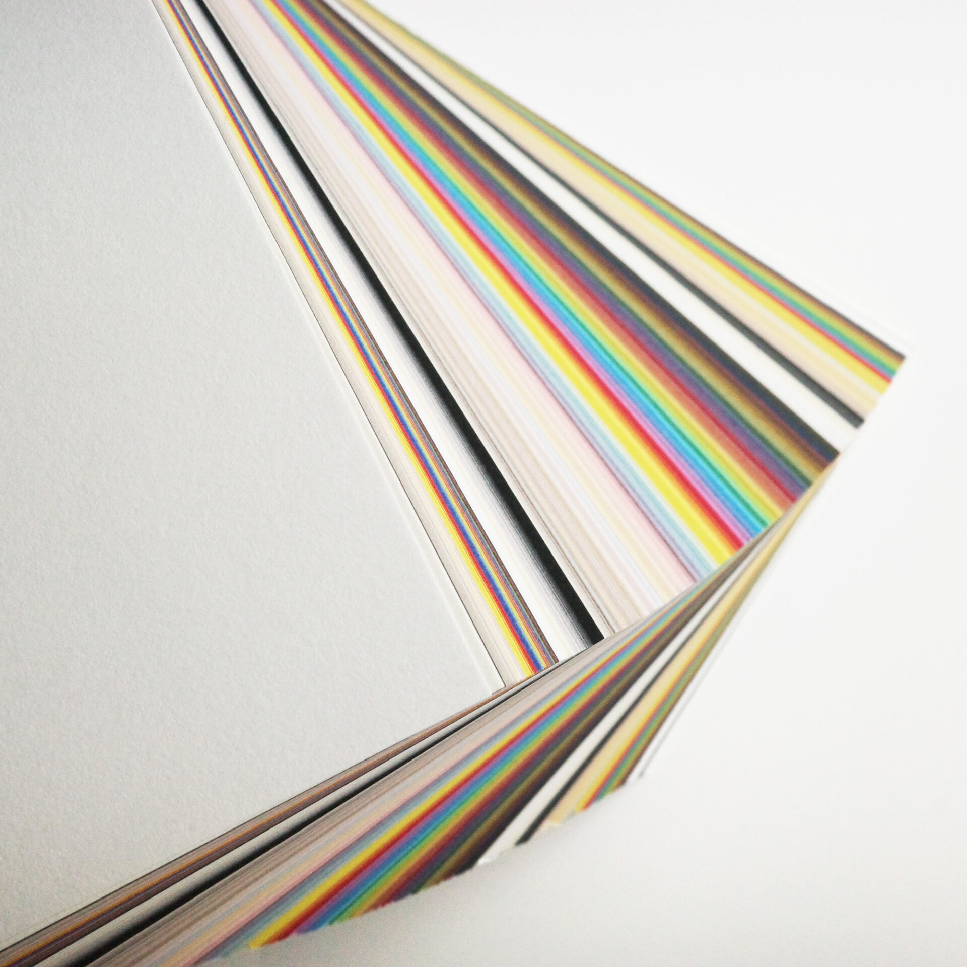 44色の多彩な色揃えと7連量の厚さで、幅広い用途に対応する色カードの定番です。若干の艶感を感じれるプレーンな肌合い。